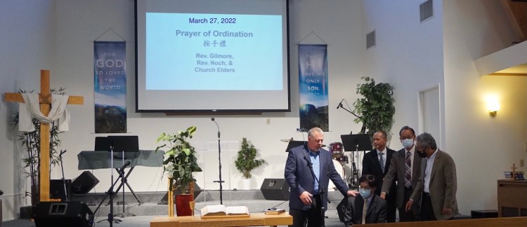 按牧慶典:今主日(3/27)南太平洋區的區監督 Rev. David Gilmore 蒞臨本教會代表宣道會主持陳牧師的按牧儀式。