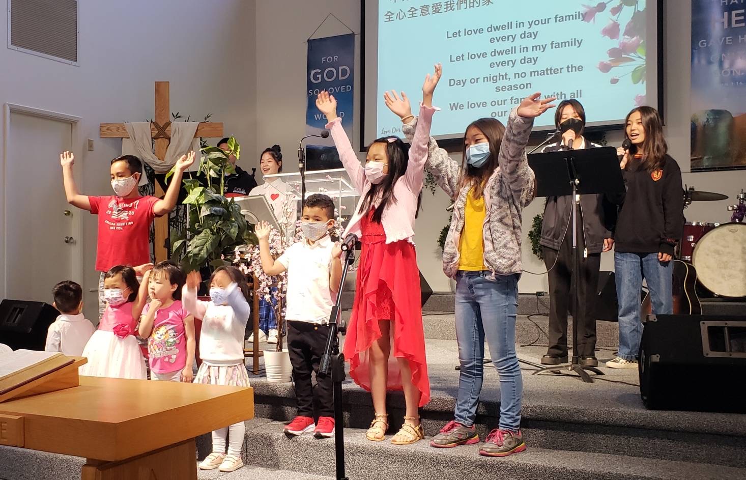 母親節慶祝: 今天兒童主日學的孩子們向母親們獻歌, 教會也備有蛋糕和小禮物給每一位母親, 謝謝她們每日的辛勞。